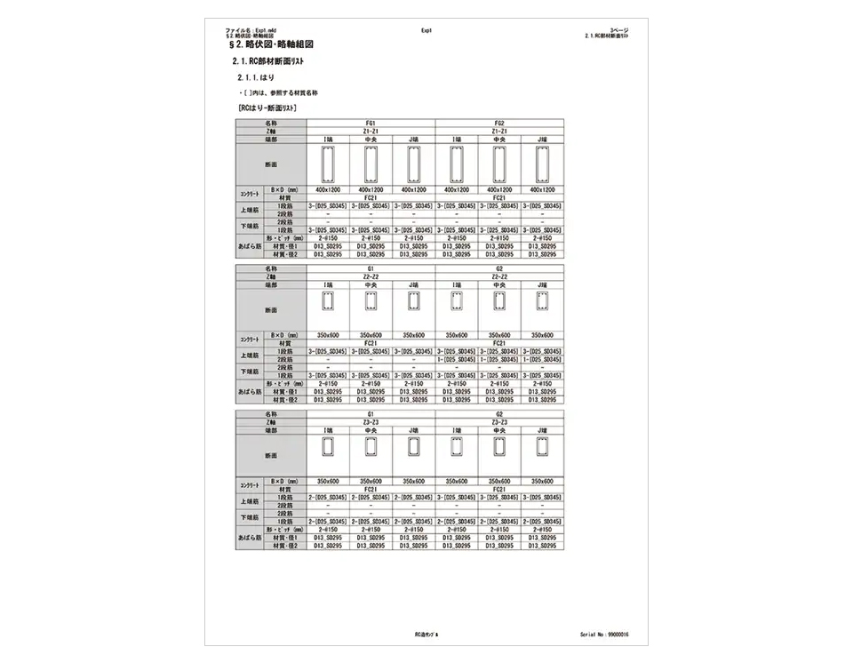 | 表 | 断面リスト、荷重表、応力表、検定比表、断面計算結果詳細表 |